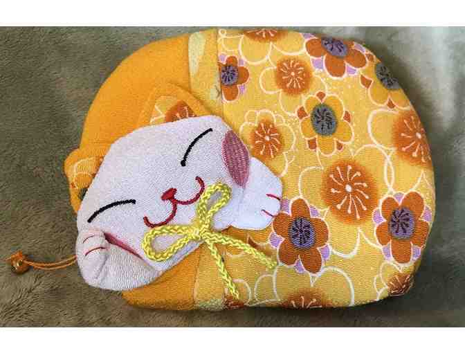 Mini cat purse in Yellow. Zippered top. No inner pockets.