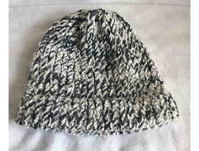 This hat was knitted by one of our volunteers. It is super soft and stretchy so it will fit an adult medium to large size head. This hat is light weight and the softest of the bunch. Would make an excellent stocking stuffer.