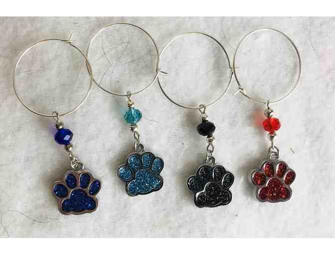 Paw Print Wine Glass Charms - Dark Blue, Light Blue, Black, and Red