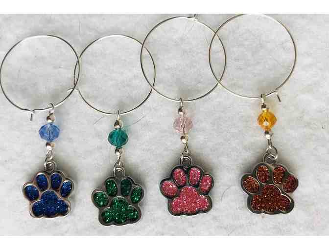 Paw Print Wine Glass Charms - Blue, Green, Pink, and Orange
