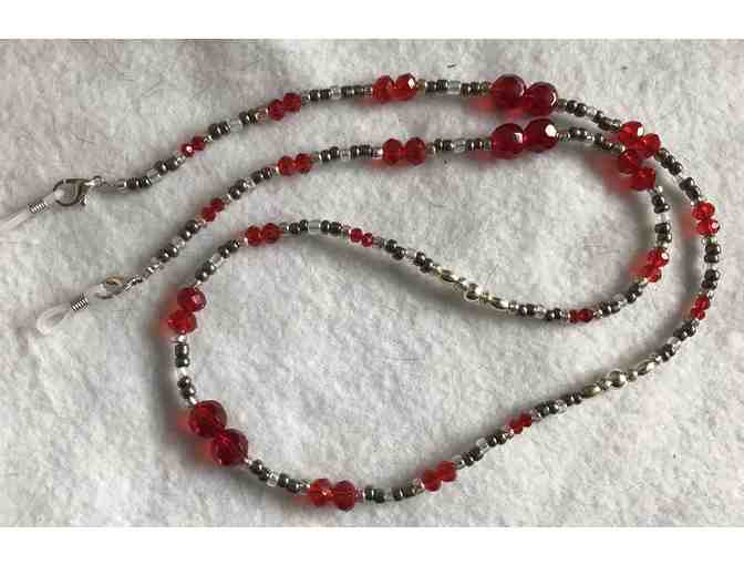 These lovely handcrafted beaded chains can be used to hold your eyeglasses or mask around your neck so you don't set it down somewhere and forget where you put it! Lobster claps are on each end and eyeglass holders (included) can be attached to the clasps and easily used with your eyewear. Approx 29” clasp to clasp