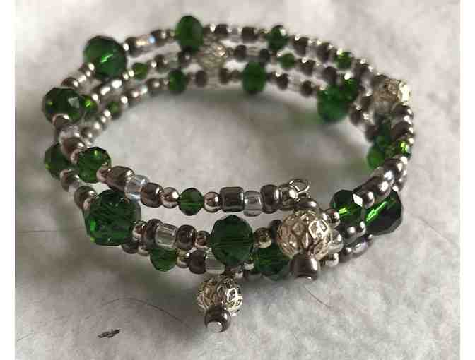 Lightweight Beaded Wrap Bracelet - Green, Silver, and Clear