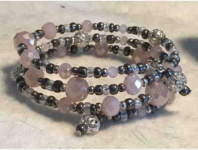 Lightweight Beaded Wrap Bracelet - Pink, Silver, and Clear