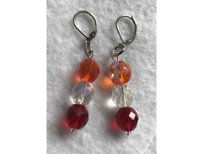 Red, Orange, and Clear Dangle Czech Bead Earrings