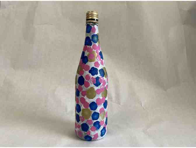 Hand Painted by Boys & Girls Club members, this pink and blue deco bottle would add a pop of color to any room!