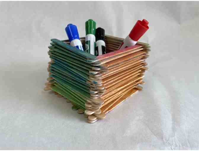 Lovingly assembled by a Boy & Girls Club member. This pen/pencil box is perfect for scrissors or markers and will add a touch of colorful cheer to your work space.