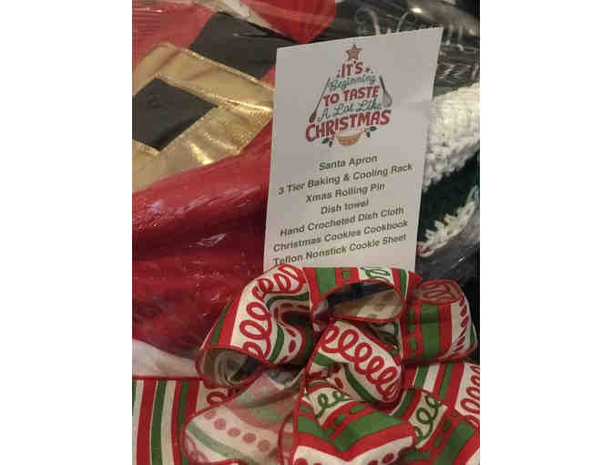 Cooling racks, Santa apron, Christmas themed rolling pin, cookie sheets & recipe book & more.