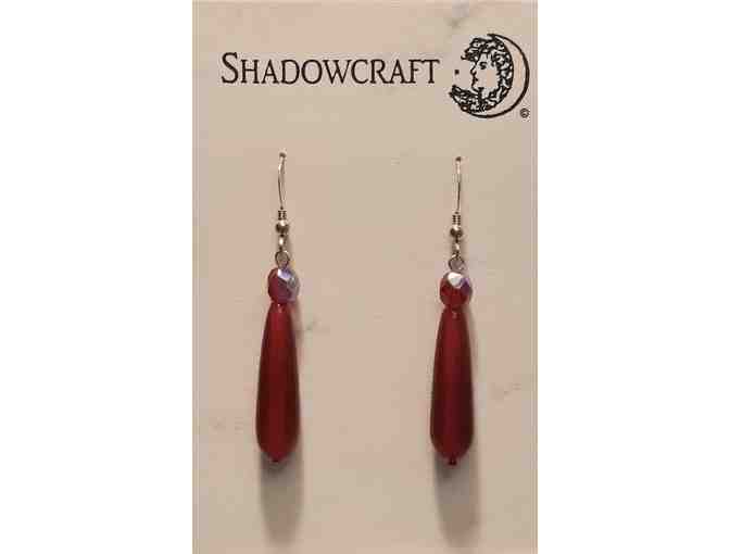 Festive crimson drop earrings, with iridescent Czech fire polish accent beads, gold filled French wires; 2" long