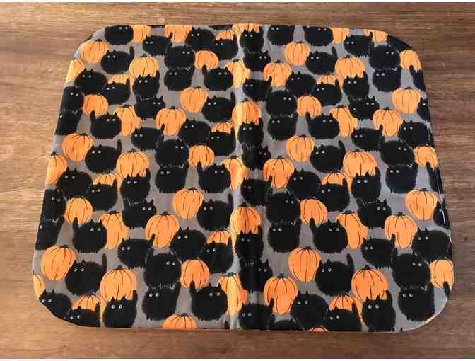 These reversable cat mats are just the thing for your kitties to lounge on or to place under their food and water bowls to avoid making a mess. Good quality fabric. Could also be used as a kennel liner for either cat or dog.