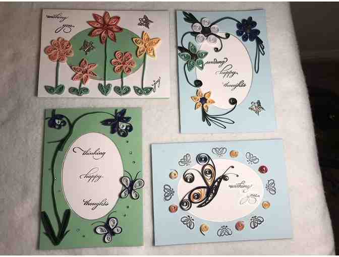 Set of 4 handmade Thinking of You cards. Each is 4.5 in x 6 in and comes with matching envelope. Blank inside.