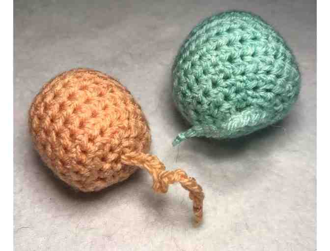 Set of 2 catnip ball toys. Contains USDA certified organic catnip (PetLinks Pure Bliss catnip). Each measures approx 1.5 - 2 inches in diameter