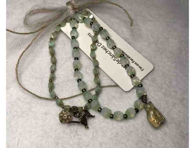 Double, pre-stretched, USA made elastic, stretch bracelets. All are made with glass from the Czech Republic. The charms vary, most are metal with shapes of kitties or eyes or hands. One size fits most.