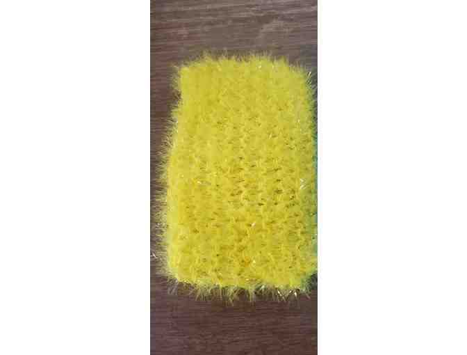 Very cute little dish scrubby. Aproximately 5" x 3" These look like they would really work- I'm buying a couple:) Check out all the other colors!