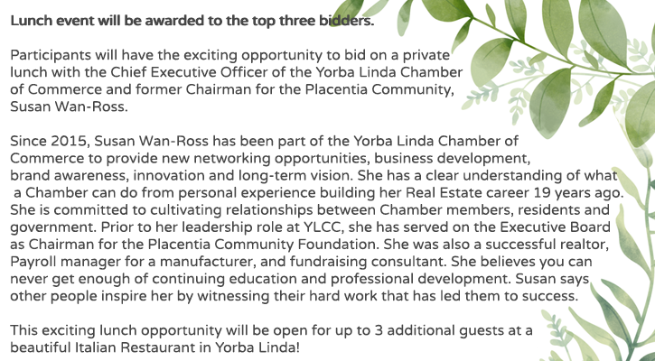 Lunch with Yorba Linda Chamber of Commerce CEO Susan Wan-Ross