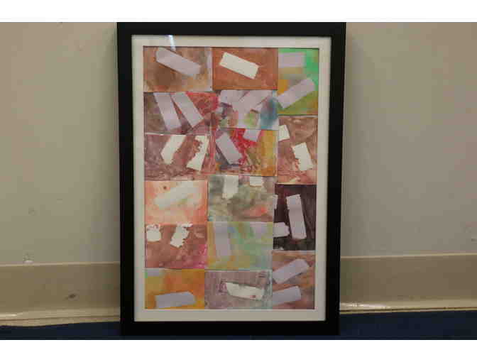 A collaborative Preschool watercolor piece featuring strips of negative space.