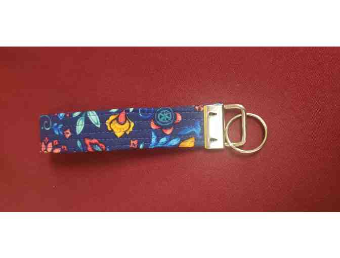 This 6-inch key chain was handmade by a local quilter. Created from the Pioneer Woman fabric collection called "Maize", this key chain is a great accent and functional piece to hold your keys and quickly find them in any purse or bag. Enhanced with a silver fastener and key ring. Show off your style with this handmade key chain.
