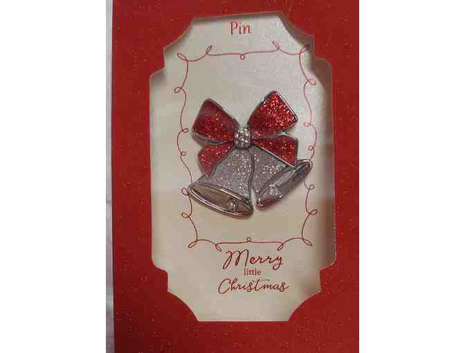 Red Bow Silverbell Pin 1 3/4" x 1 3/4"