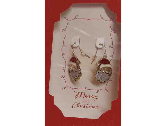 Santa head earrings with crystal pom pom and mustache 3/4" x 1"
