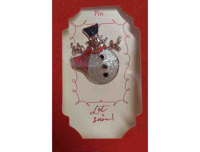 Snowman Pin crystal with black and red accents 1 3/4" x 2"