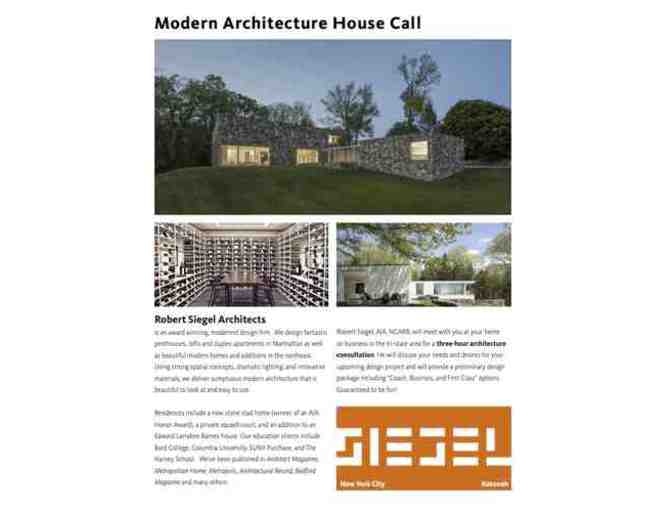 Robert Siegel Architects is an award winning, modernist design firm. We design fantastic penthouses, lofts and duplex apartments in Manhattan as well as beautiful modern homes and additions in the northeast. Using strong spatial concepts, dramatic lighting, and innovative materials, we deliver sumptuous modern architecture that is beautiful to look at and easy to use. Award-winning architect Robert Siegel, AIA, NCARB will meet with you at your home or business in the tri-state area for a three-hour architecture consultation. He will discuss your needs and desires for your upcoming design project and will provide a preliminary design package including Coach, Business, and First Class options. Guaranteed to be fun!