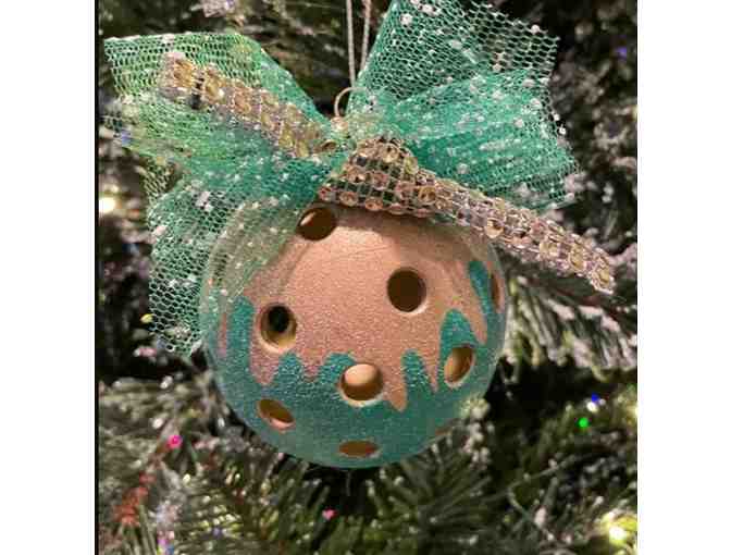 One-of-a-kind, custom-made ornament, from a pickleball that has seen action. What a unique gift for a pickleball-playing friend or treat yourself to one (or more)!