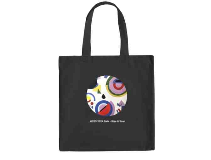 Tote bag decorated with collage pieces from the K grade project inspired by Sonia Delaunay.