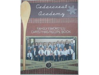 The collection of delicious recipes in the Christmas Family Favorites "limited edition" Recipe Book is a great representation of family tradition. These recipes are "tried and true" consisting of simple ingredients and directions. The front is embellished with a classroom photo and is laminated (just in case of spills) and the book is creatively bound with a spatula. Shop early as there are only 10 copies of this priceless recipe book available for sale. Don't miss your chance of purchasing this wonderful memory of your family's and your child's classmates families Christmas traditions.