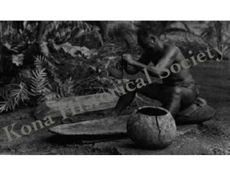 a photo of an Hawaiian man pounding poi. Photograph by Fritz Kraft