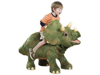 • Kota the Triceratops dinosaur from Playskool. Measuring over 40 inches tall, the toy features sensors in nine areas on his body. Kota will react to touch by moving his head, tail and horns. Kids can also press a button on the riding handle to play adventure-themed songs. Requires 6 "D" batteries - not included. Ages 3 and up.
