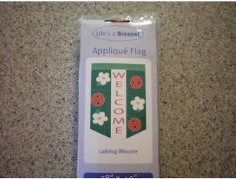 Applique flag with "Welcome" ladybugs and flowers. 28" x 40"