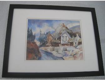 Original Watercolor Painting by Columbus Architect George Acock. Mr. Acock grew up in central Ohio and attended the Ohio State University. George has designed numerous Columbus landmarks such as the Limited Brands corporate headquarters buildings, the Beggs building on the south side of Capital Square, the recently renovated Thompson Library on the OSU campus and the new residence halls & Crane Student Center on the CCAD campus. George enjoys painting images of his projects but also paints when he and his wife travel the world, typically returning from a trip with dozens of watercolors that document his travels. His most recent show at the Mahan Gallery in the short north was well received and included paintings from Spain, Cuba, Utah and Italy.