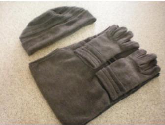 Dark grey microfiber set including hat, scarf and gloves.