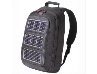 Voltaic Converter, small light weight day bag with a compartment for a water bladder, so it is ideal for biking and hiking. Multiple attachment mechanisms mean it can work as a pannier on a bicycle, a tank bag on a motorcycle, a saddle pack, or a day bag attached to a lager rucksack. Fits up to a 17 Mac Powerbook (15.5 x 10.5 x 2) Wire channels throughout the bag for headphones, & bladder tubes High density padding in the shoulder straps & back Can be worn as a backpack or sling bag Mesh backing material for better airflow Shell uses 600D fabric made from recycled PET (soda bottles), which is tough, water resistant & lightweight Webbing with fastek buckles at each corner to loop through anchor points MOLLE compatible PALS for attachment to military style rucksacks Removable fastek buckles can attach to another bag & serve as an anchor point Volume - 600 cubic inches (10 liters) 4 Watts of Solar Power - From 3 tough, light weight, & waterproof solar panels 4-6 hours of direct sunlight produce enough charge to fully charge a typical cell phone Battery Included - 4,400mAh at 3.6 volts Li-Ion battery pack with 3 voltage settings to store solar power Battery can be charged using the AC travel charger or DC car charger making it just as useful on the grid as off Indicator light inside the logo shows when the panels are generating a charge Unit Dimensions - 18 H x 11-12 W x 3-4 D; Weight - 2.9 lbs including battery & solar panels It is not designed to charge laptops, it will however charge cell phones, sat phones, PDAs, GPS devices, iPods, cameras & most other handheld electronics