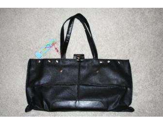 This espe "Regal", faux leather, black handbag has a large, removable inner bag which makes it great for around town or for travel!