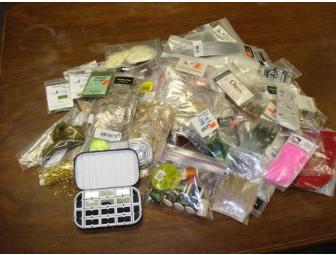 This lot includes deer hair, Flashabou, tinsel, mallard, streamer hackle, golden pheasant head, thread...from manufacturers like Hedron, Universal Vise, Metz, Partridge, Rocky Mountain Dubbing, Hareline Dubbin, and more (including Fish & Fly branded metal fly box). Lot fits into Priority Mail box - about 2 lbs (plus or minus) of fly tying fun in a box!