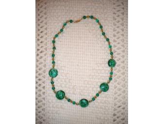 Necklace of reproduction of antique glass beads hand crafted by Muranese glassblowers. (Strand measures 22 inches in length.)