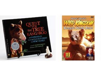 Discover the Outback with this eco-friendly package! We've included the book, Quest for the Tree Kangaroo: An Expedition to the Cloud Forest of New Guinea, the DVD set, Mutual of Omaha's Wild Kingdom: Australia's Awesome Animals, and a Kangaroo tagua nut figurine.