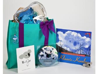 Our Klassic Koala Blue Gift Set includes (1) eco-friendly fabric tote bag, (1) blue koala bath set, (1) koala magnet, (1) glow-in-the-dark koala necklace, (1) cd of professional koala stockphotos, and the book, "Klassic Koalas: Ancient Aboriginal Tales in New Retellings" by Lee Barwood.
