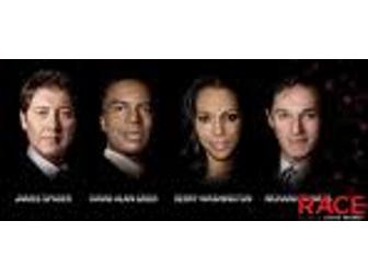 Race is being performed at The Barrymore Theater between Broadway & 8th Ave in NYC. Offer good for 2 tickets February 16th through June 8th on the following selected days: Tuesdays at 7pm, Wednesdays, Thursdays & Fridays at 8pm and Wednesdays at 2pm. Winner will be able to coordinate the tickets with the donor.