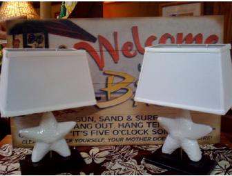 Adorn any room with this pair of white starfish lamps with dark wood base and white rectangle shade from Element Home Furnishings. Perfect for your child(ren)'s room, guest room or beach house!