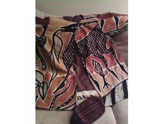 Beautiful one of a kind hand crafted woman's authentic Kente Cloth Swing Coat with matching Kufe (hat).