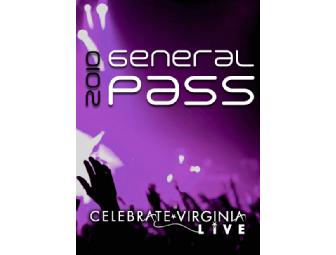 Celebrate Virginia Live Concert Series - Two General Admission Season Passes for 2010 Season. Passes include: General Admission seating, free parking, early admission to every show, and special collectors edition laminate with lanyard.