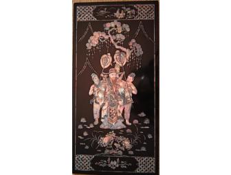 The abalone images will be applied after this stage. All added items have been carved and polished to fit the scene that is being created by the artist. Then 2 final layers of natural and transparent resin are applied. So making lacquer ware is really a melody of the products of the earth.