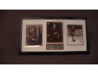 Framed 18" x 34" Autographed photos of hockey's greatest players to wear # 9. Montreal Canadien, Maurice "Rocket" richard, Detroit Red Wing, Gordie Howe and Chicago Blackhawks, Bobby Hull.