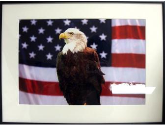 - A bald eagle perches in front of an American Flag. Taken by Boston Globe Photographer, John Tlumaki.