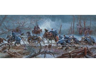 The "Mud March" by Mort Kunstler is a limited edition print, signed and numbered 470/950. A Certificate of Authenticity is provided. Size 13 1/2" x 30" (image)
