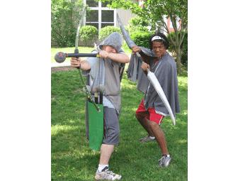 The full package contains all of the essentials of a basic Wayfinder Birthday party. Kids learn how to use our foam swords and proceed to play a variety of games (Capture the Flag, Dueling Circle, Three Musketeers, etc.) that will leave them beaming with enjoyment and wanting more.