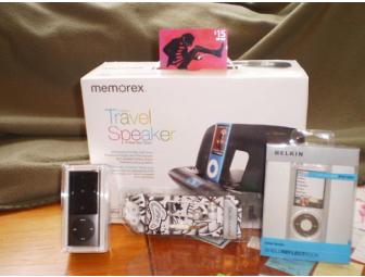 Perfect for all music lovers! Gift basket includes iPod Nano 8GB, Belkin clear iPod cover, Skullcandy earphones, a Memorex Speaker System to power, play, and charge your iPod, and a $15 iTunes card!