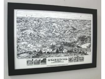 One professionally-framed print of Henry David Thoreau's Concord, circa 1845. Print measures 20" x 30" (framed piece measures 23" x 33"). This image won two national awards of excellence the year it was published (2006) and depicts an historically-accurate view of what Concord looked like the day HDT took residence at Walden Pond.