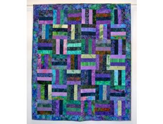 Beautiful purple and green batik fabrics in a traditional rail fence pattern.